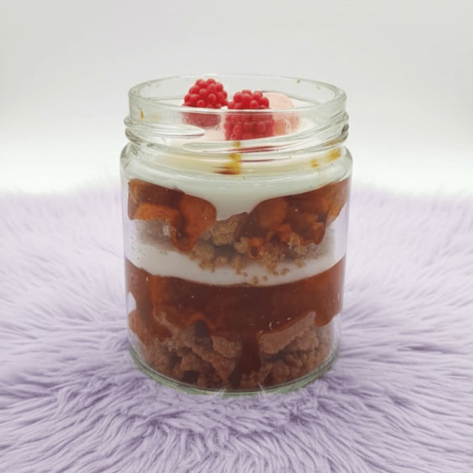 • Adorable jar candle styled like a strawberry cake.